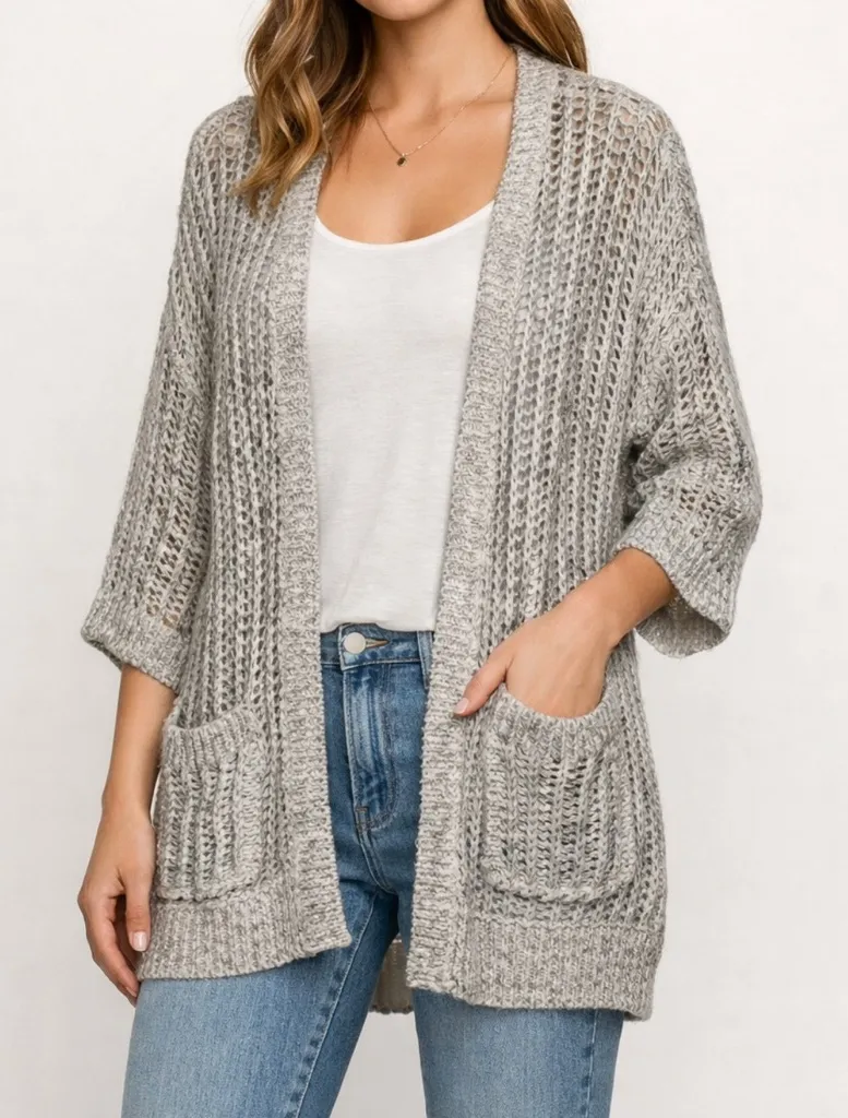 Free People Open Knit Cardigan Sweater Boho Grunge Slouchy Beige Size Small Approx. Length 32” Sid... Show more