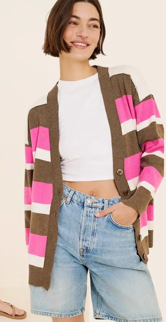 Free People League Of Her Own Cardigan in Aurora Pinecone Combo MSRP $198 Size Large Laying Fl... Show more