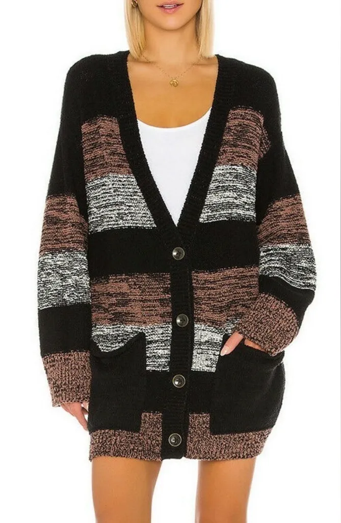 The sweater is a Free People Southport Beach Cardigan. Details Style No. 53960902; Color Code: For... Show more