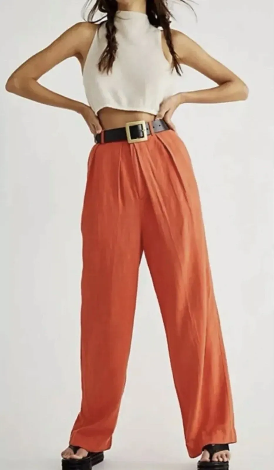 Elevate your wardrobe with these stunning orange dress pants from Free People. Made from a blend of... Show more
