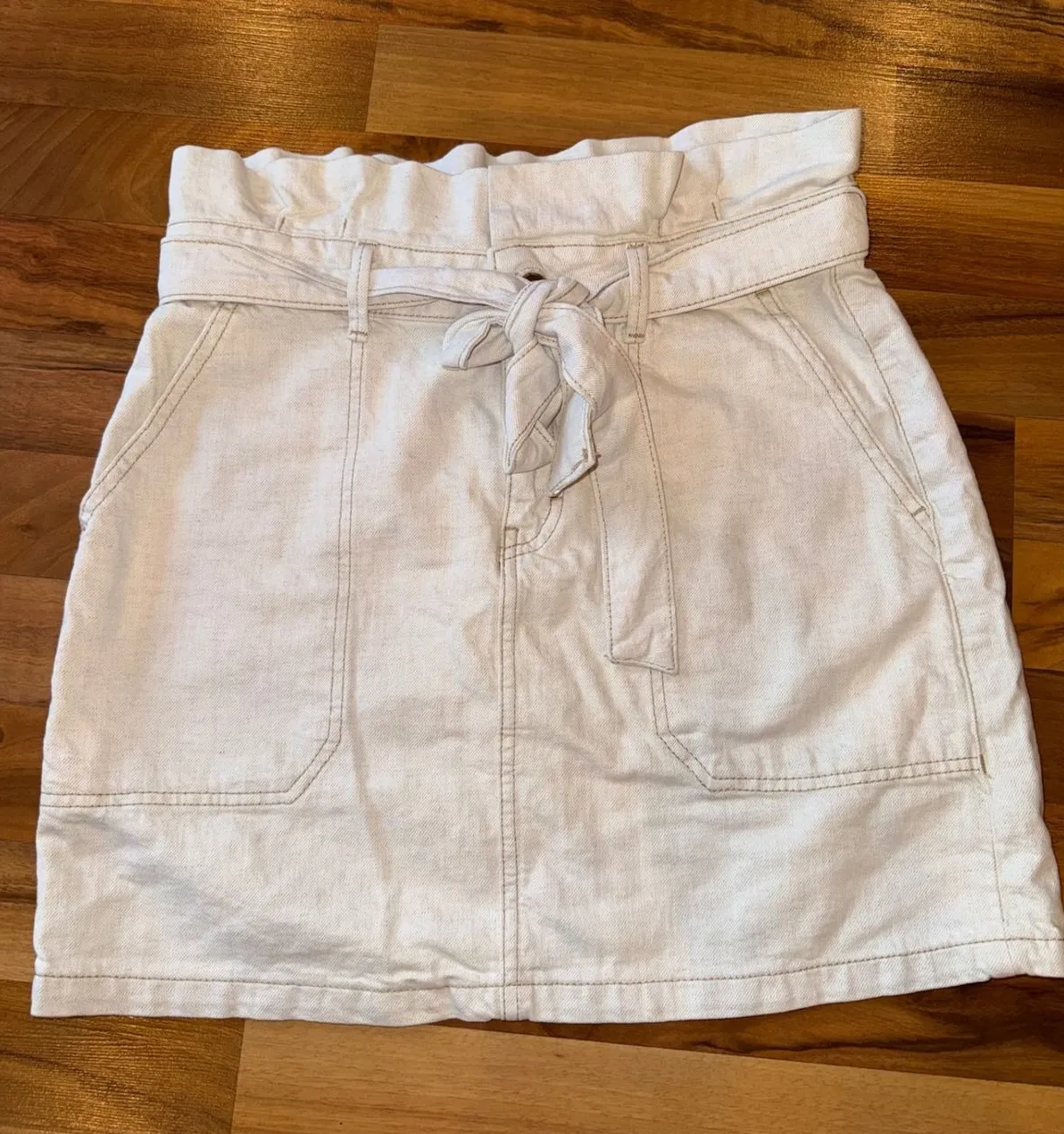 Discover effortless charm with this Free People paperbag waist denim mini skirt. The flattering pap... Show more