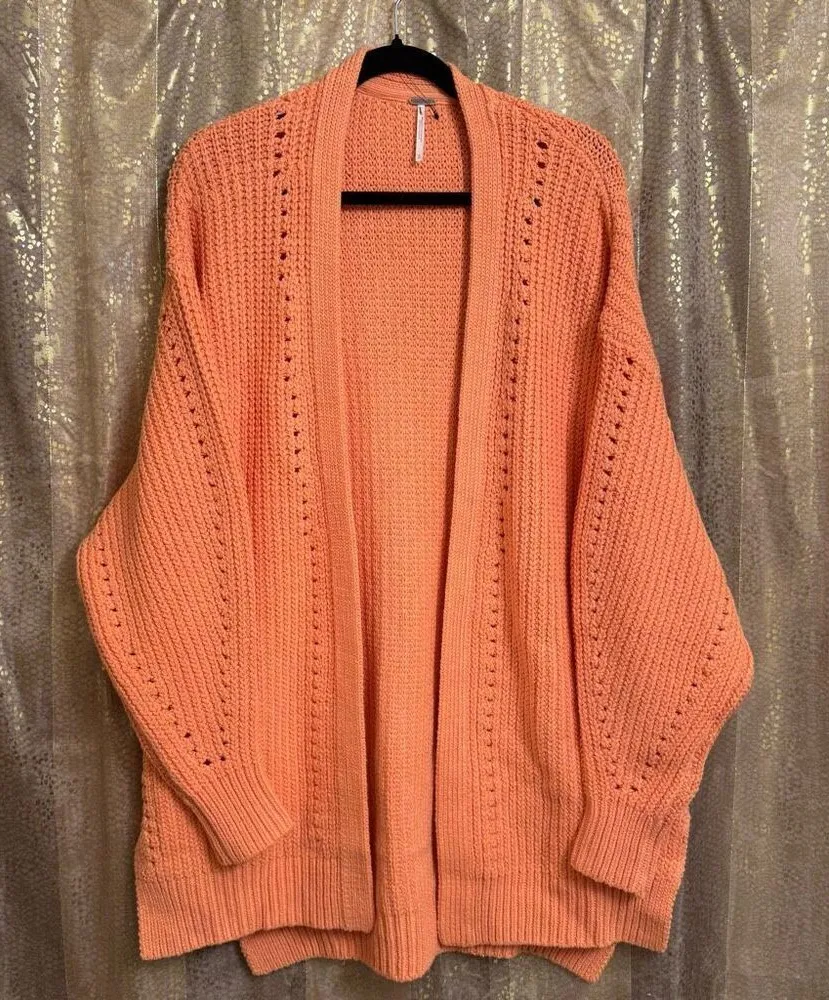 Free People Peach Orange Nightingale Chunky Long Cardigan Sweater Small NWOT Brand new without tags... Show more
