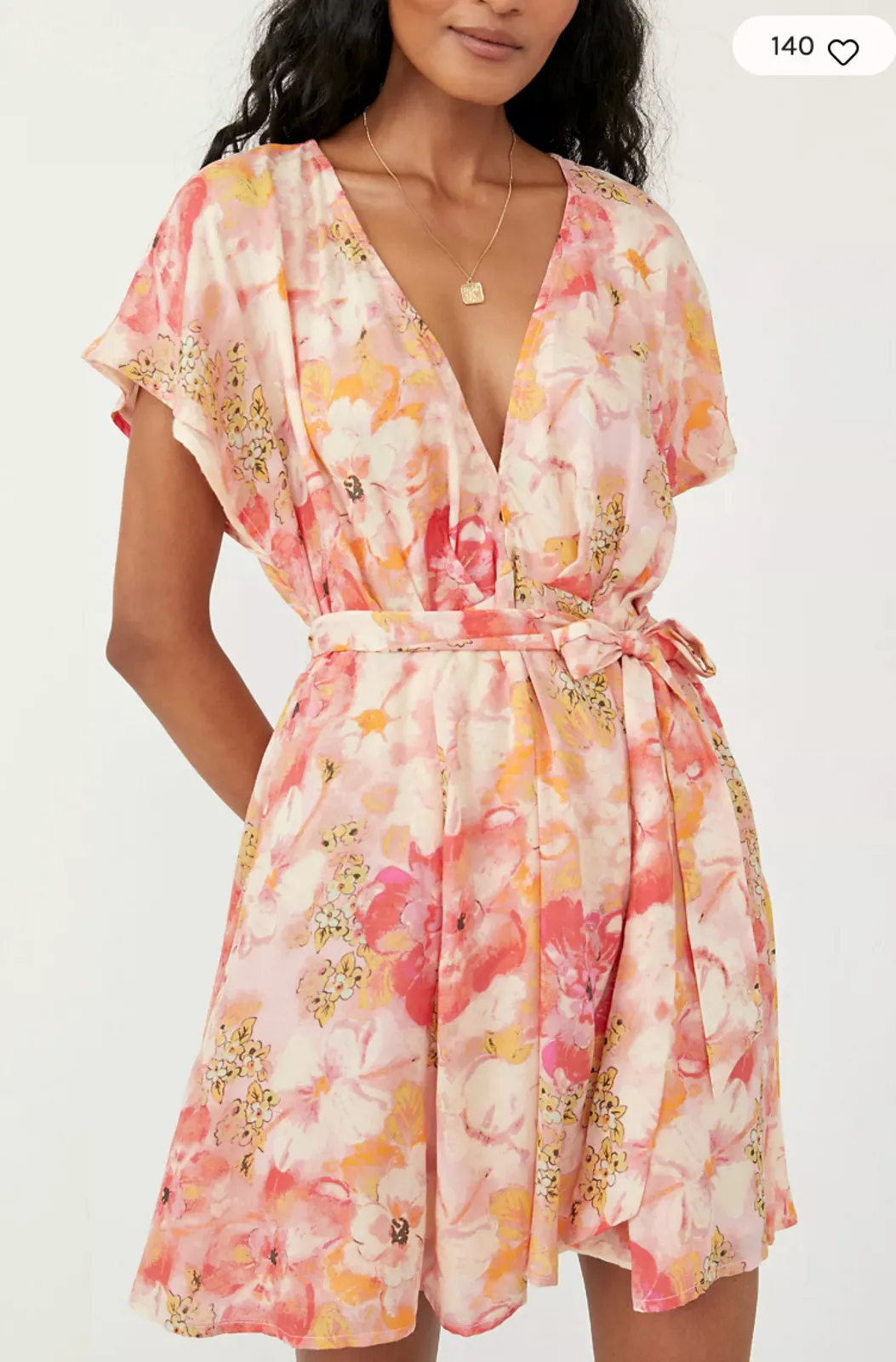 Free People Pink Floral Fit n Flare Mini Dress MEDIUM Plunging Romantic Vacation $108 Perfect summer... Show more