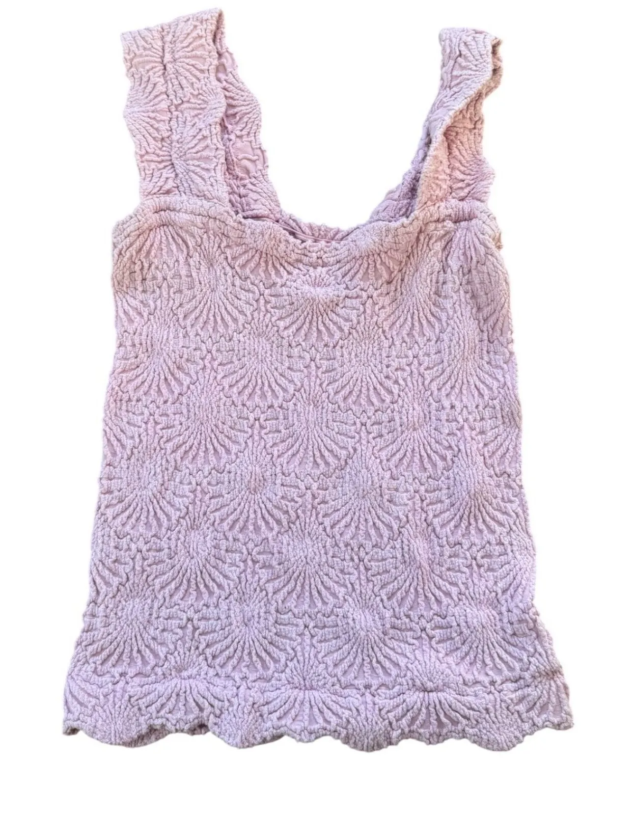 Type: Tank Department: Women Style: Cropped Material: Cotton Blend Neckline: Scoop Neck Sleeve Length: Sleeveless Sleeve Type: Strappy Sleeve Pattern: Geometric Accents: Crochet Features: Crochet, Stretch Fit: Regular Fabric Type: Knit Occasion: Casual Closure: Pullover Season: Summer, Spring Strap Type: Wide Strap Keywords: crochet, knit, tank top, sleeveless, textured, sheer, square neck, lavender, purple, boho, summer, lightweight, layering