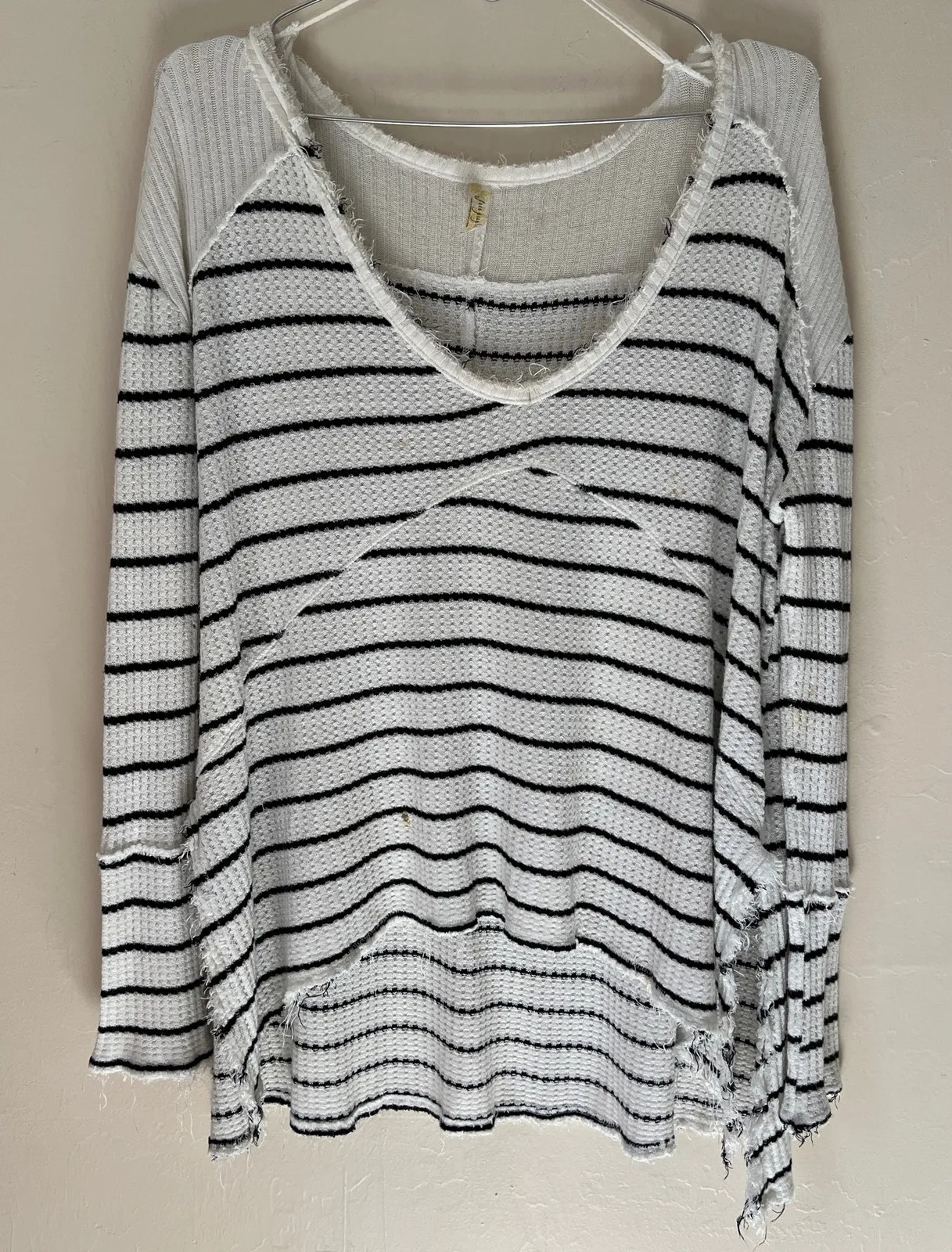 Free People Raw Hem Waffle Knit Striped Long Sleeve High Low Top. Size XS. Good preowned condition... Show more