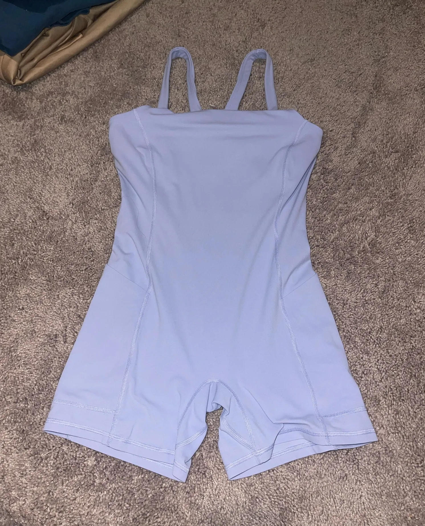 Perfect for active lifestyles! Has a built in bra and double pockets on the thighs!
