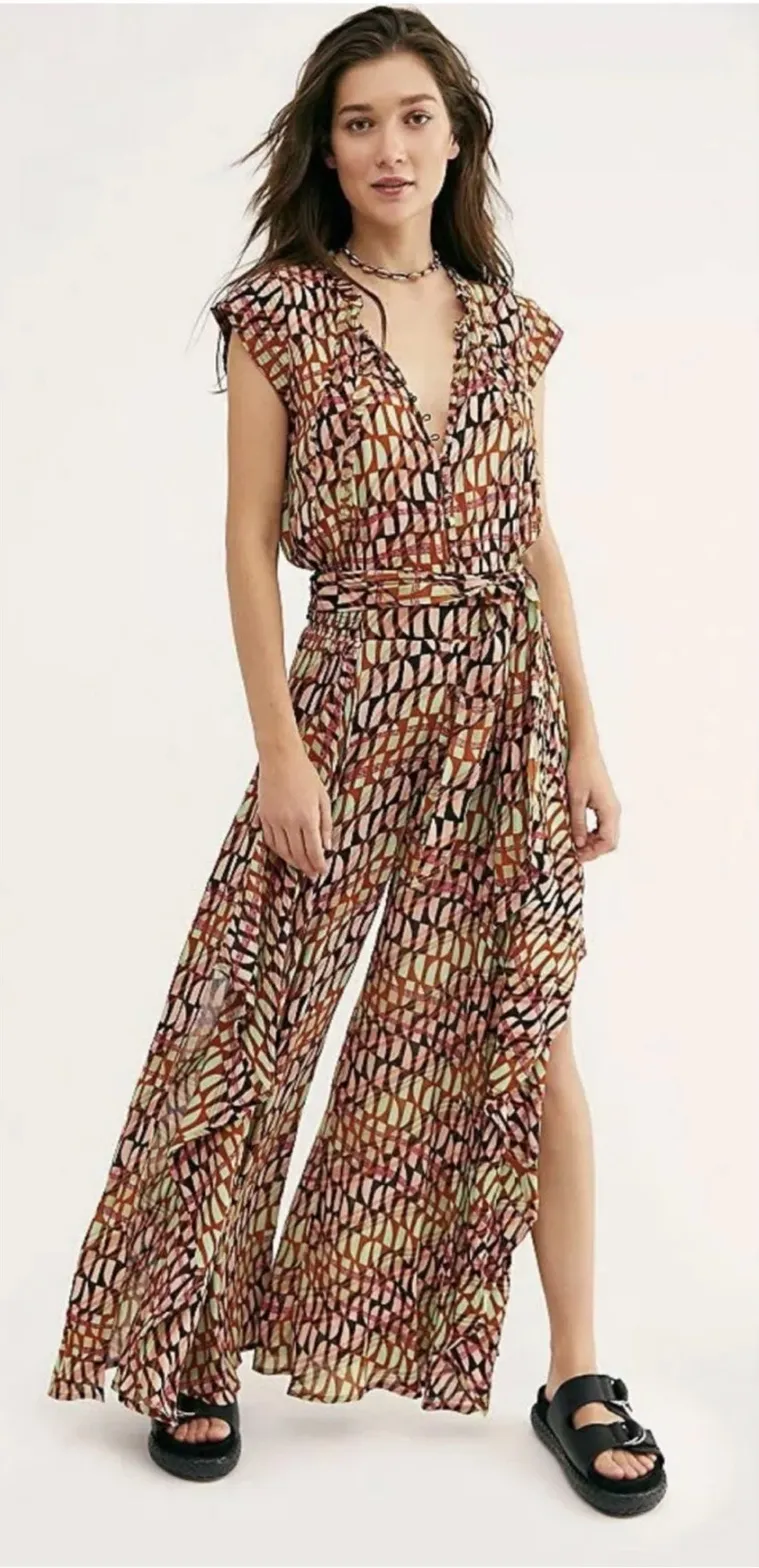 $168 Free People Sahara Jumpsuit Size Small Bohemian Festival Western Print Excellent preowned con... Show more