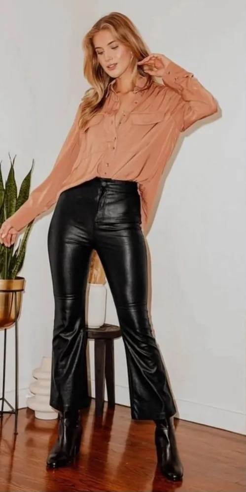 The Free People Sasha Kick Flare Faux Leather Pants are a stylish wardrobe piece for women in size 4... Show more