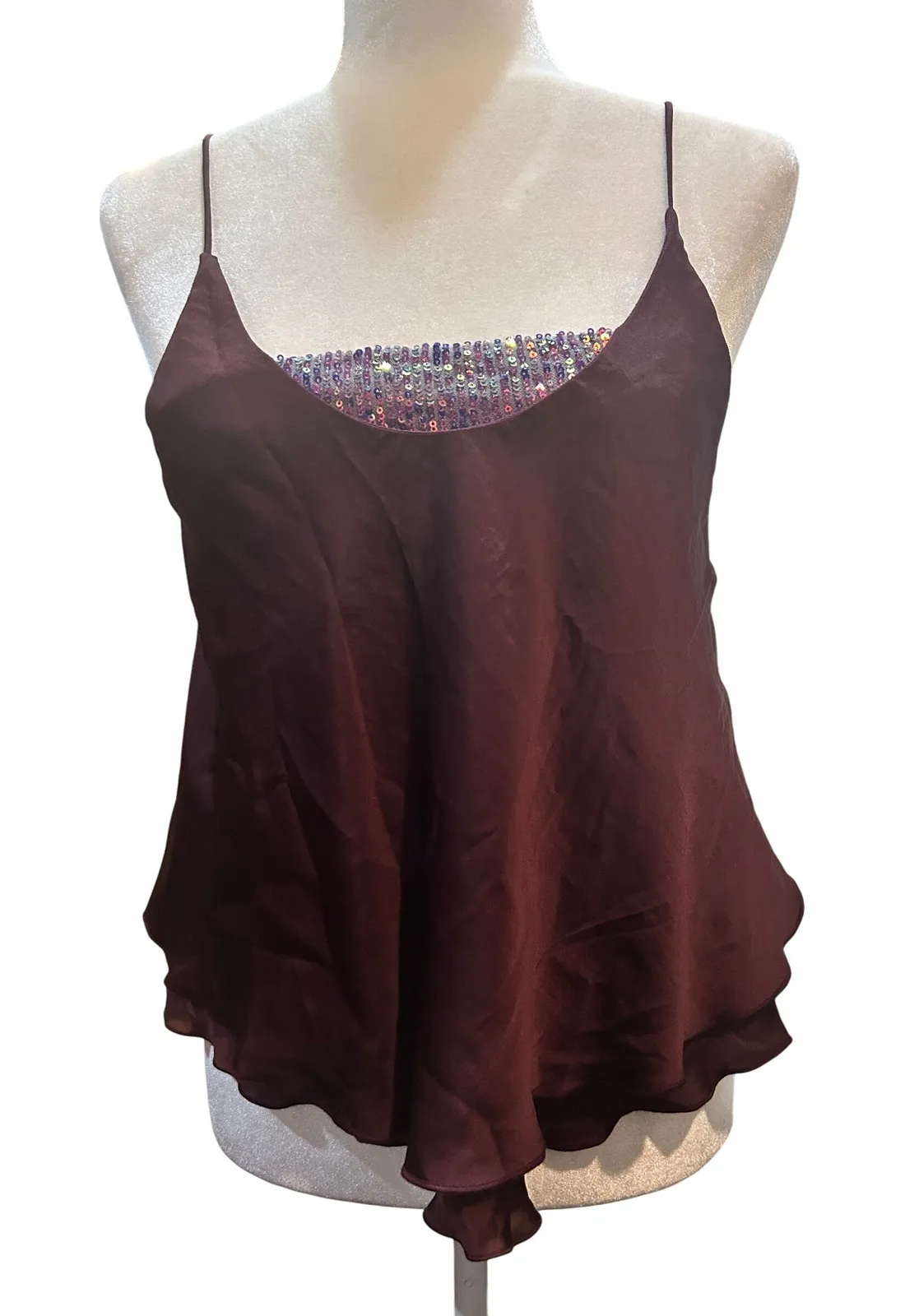 Chic cami tank, a seamless blend of sophistication and party-ready flair. This piece features a flat... Show more