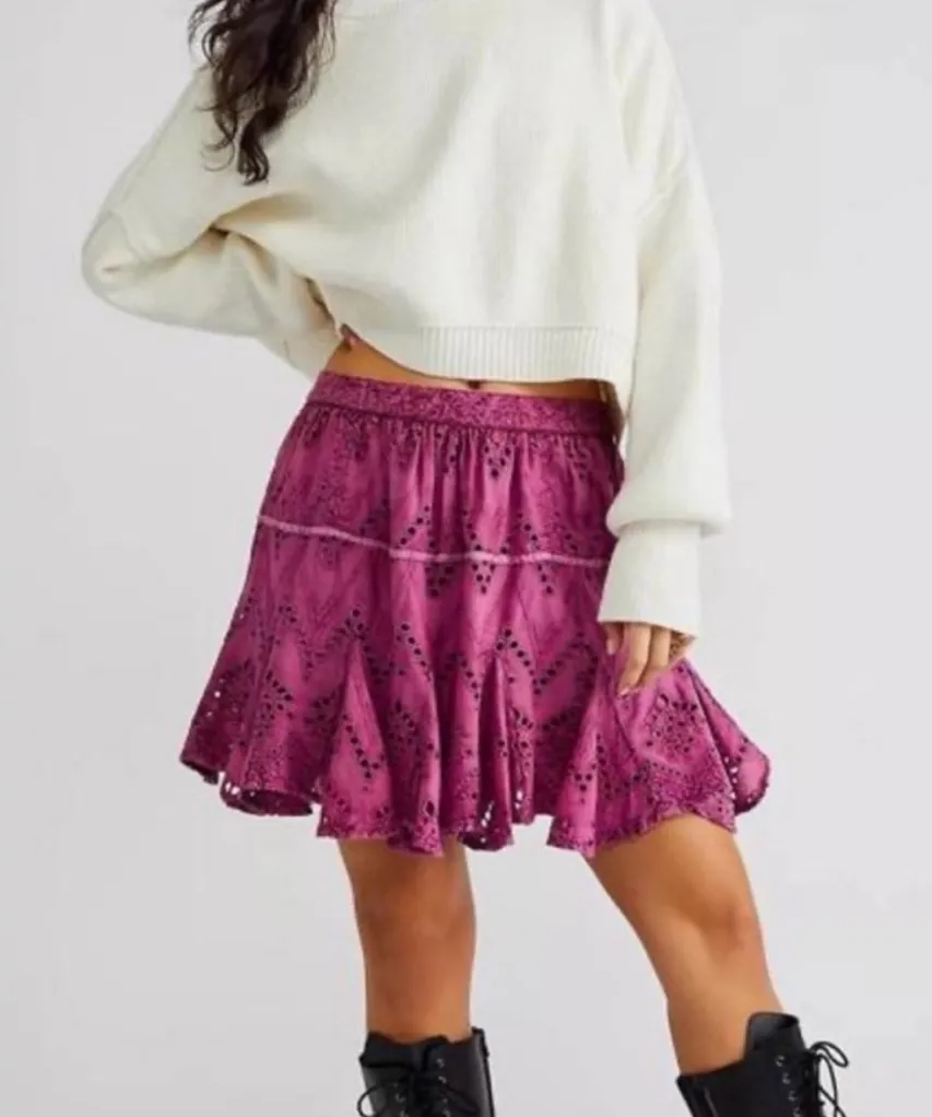 Free People Serenity Eyelet Mini Skirt Skort in Dreamy Mulberry Size medium Forever sweet and timel... Show more