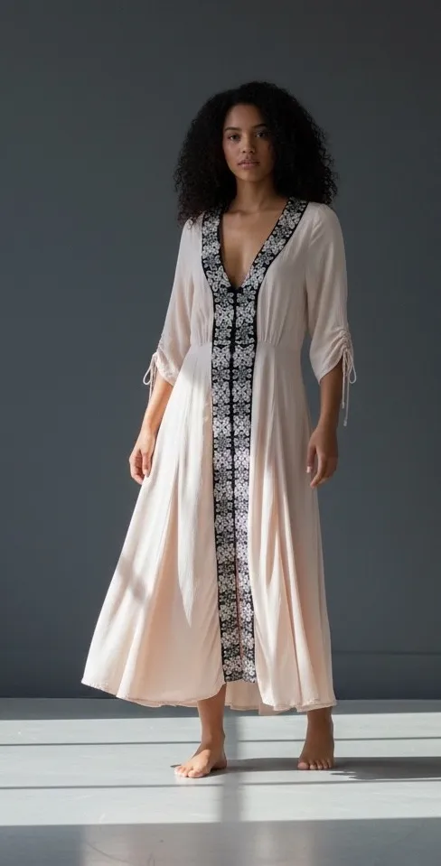 A flowing peach maxi dress by Free People. This beautiful dress features a deep V-neckline adorned w... Show more