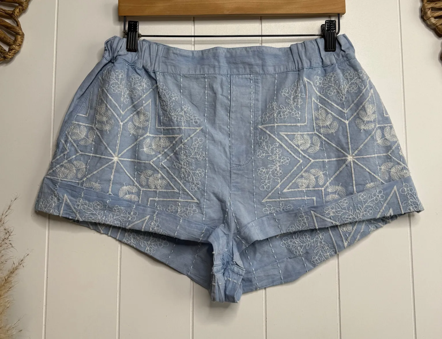 Free People shorts floral embroidered cotton linen high waist boho Condition: brand new without tag... Show more