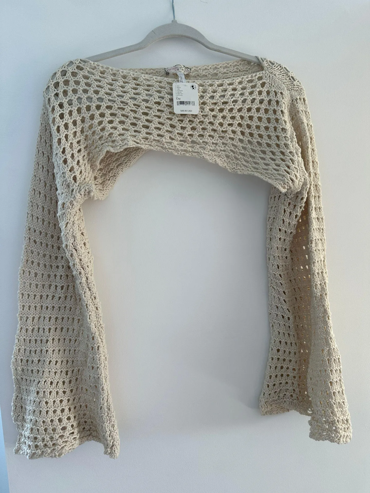 Crocheted shrug by Free People with bell sleeves Size small/medium New with tags