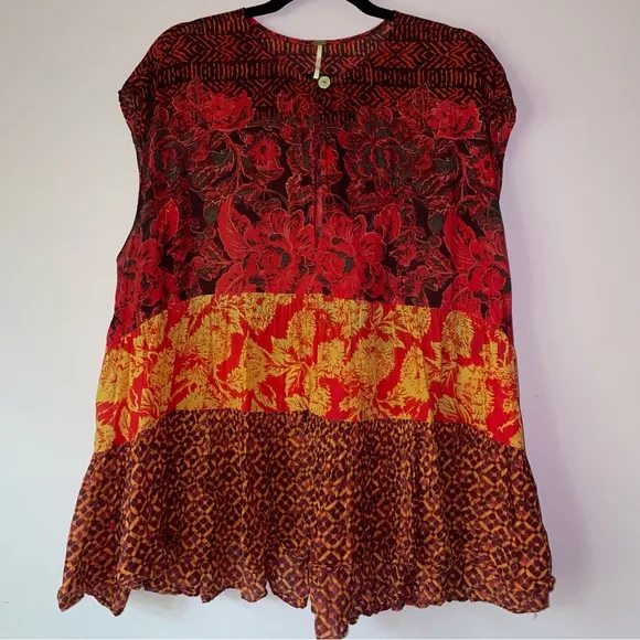 This vibrant women's top features a stunning floral design in red and yellow hues. Perfect for addin... Show more