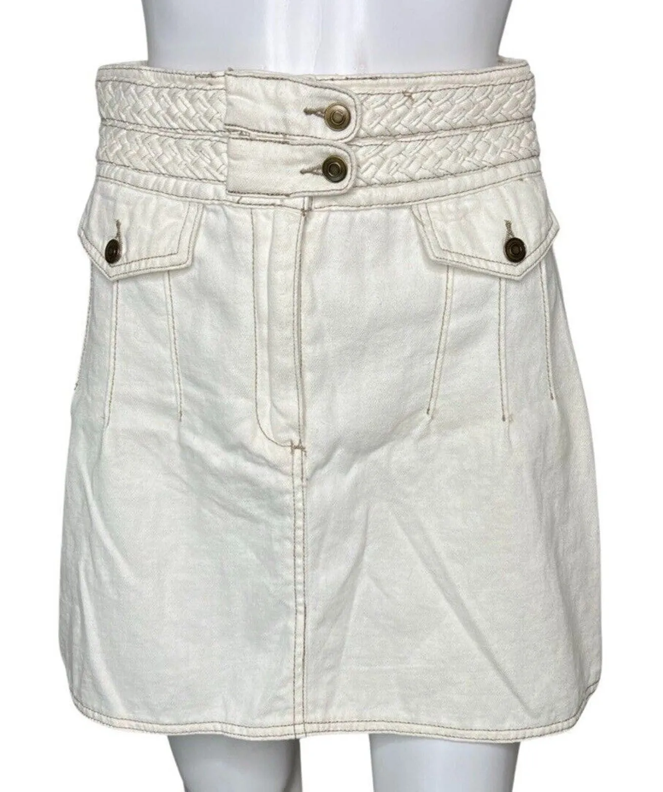 Free People Skirt Womens 2 White Braided Baby Mini Skirt Neutral Minimalist Women's Size 2 Denim S... Show more