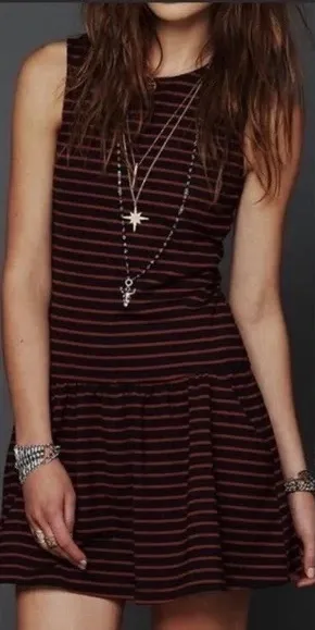 Brand: Free People Size: XS Petite Style: Sleeveless drop waist mini dress Color: Black with red hor... Show more