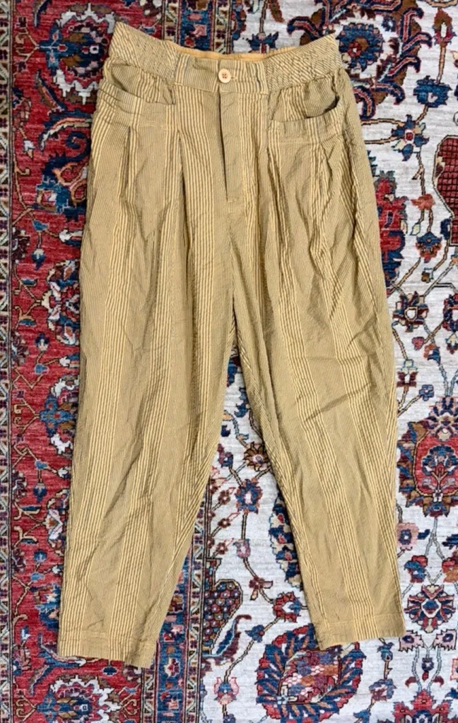 Relaxed and effortlessly cool Free People pleated striped pants in mustard yellow. Crafted from a li... Show more