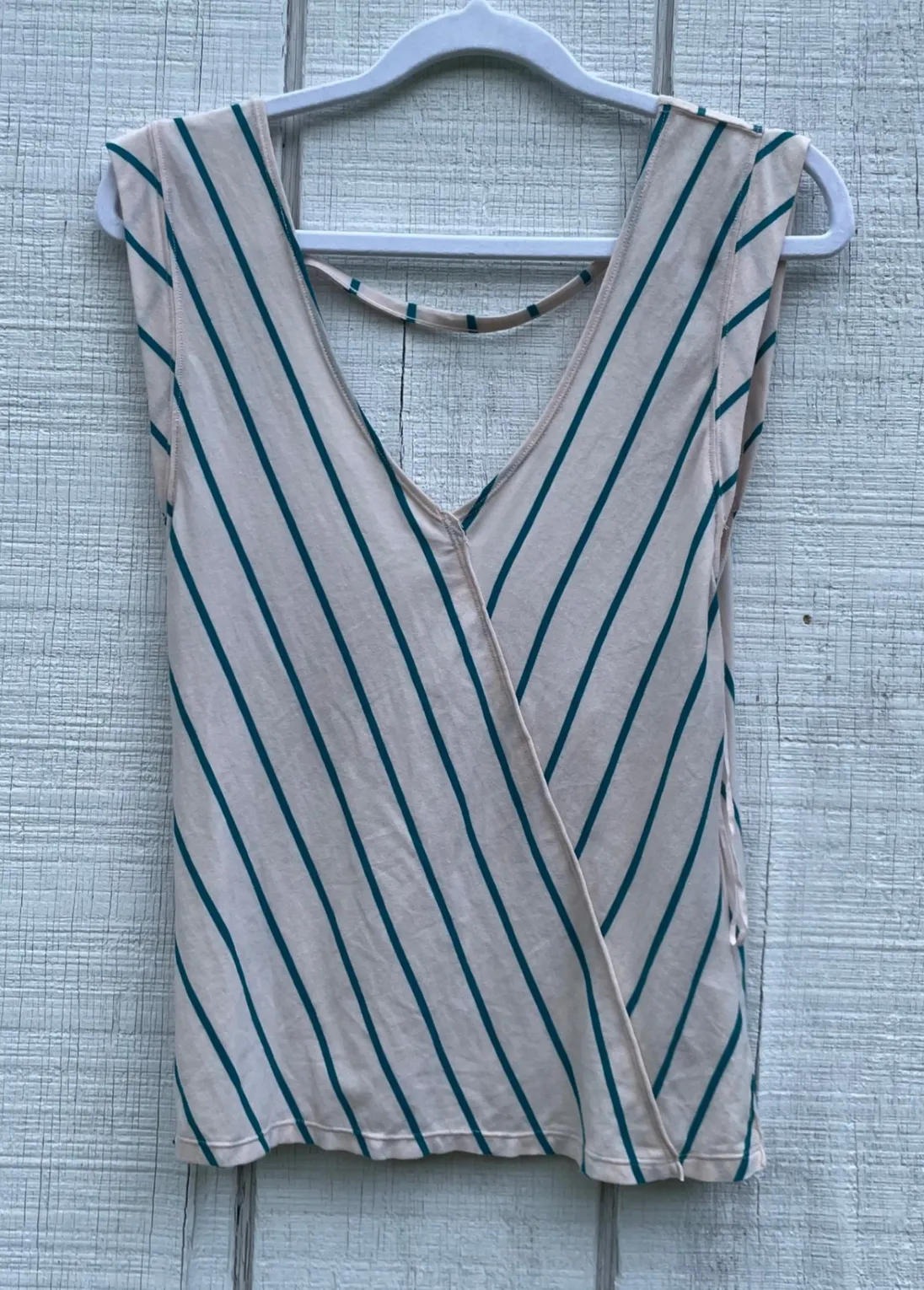 Pit to pit 16.5" Length 23.5" Keywords: Free People, tank top, sleeveless, striped, pink, teal, ope... Show more