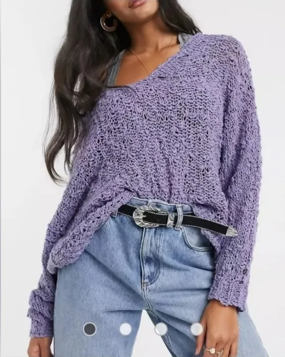 Free People Sunday Shore Cotton Blend Chunky Open Knit Lavender Purple Sweater Size M. Great conditi... Show more