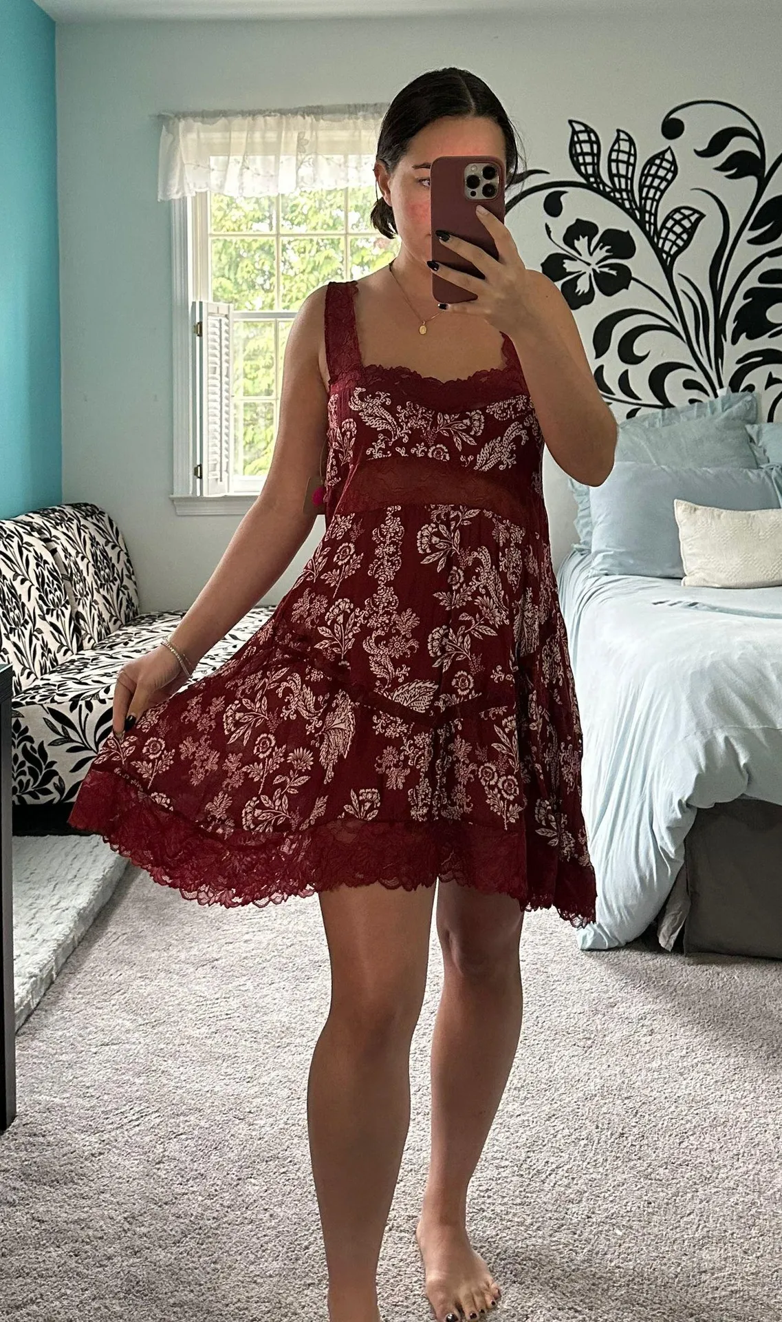 Adorable lace trim sundress. Never worn! I’m 5’2 120lbs 34B
