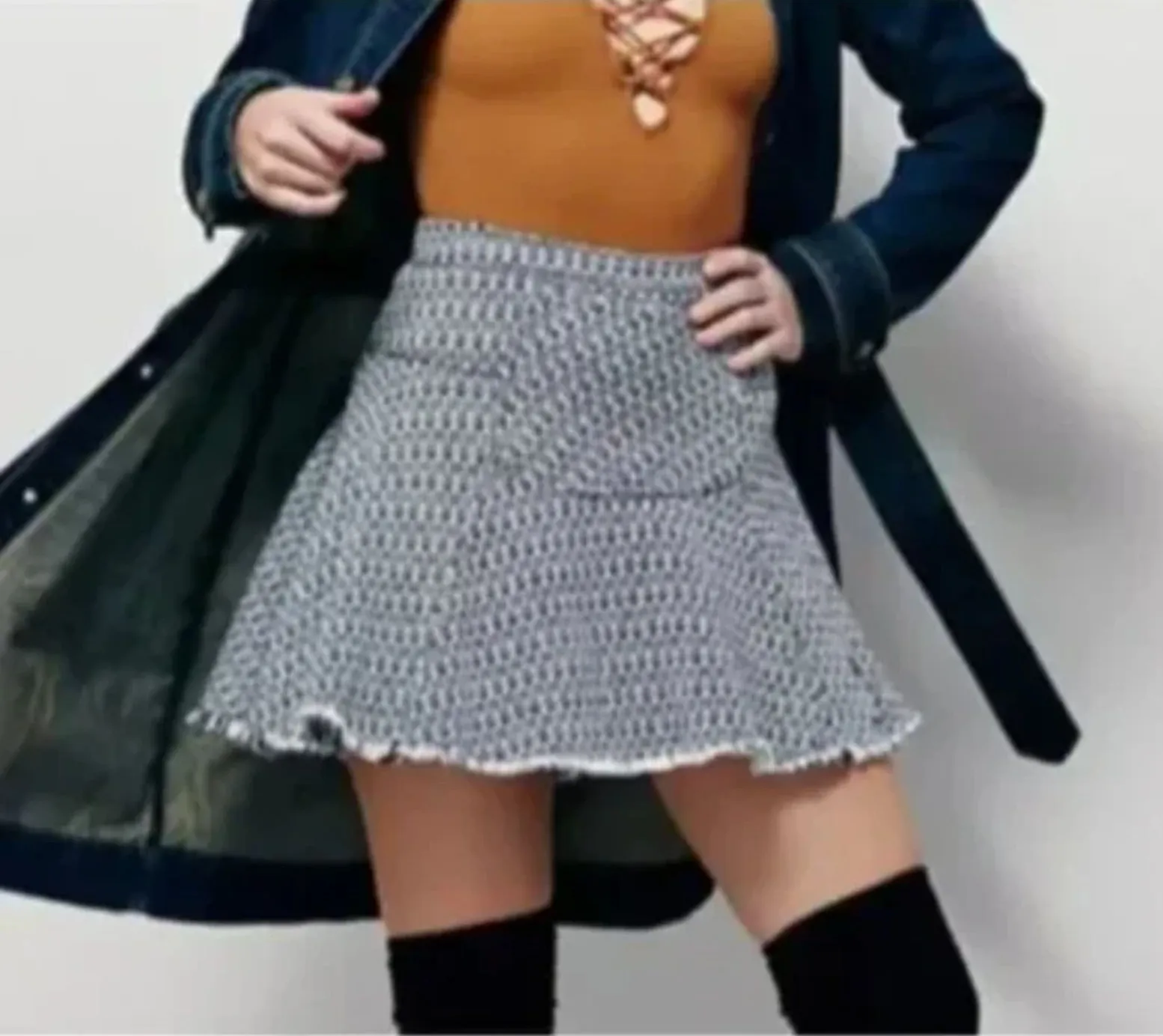 FREE PEOPLE Sunshine Smile Fringe Mini Skirt Sz 2 Black/white knit mini skirt Frayed hems A-line Si... Show more