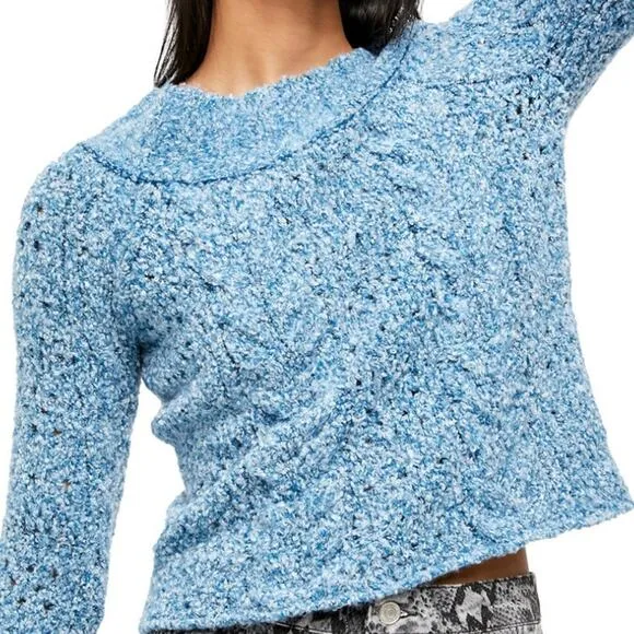 New with tags Free People cropped cable knit blue sweater. Wear on or off shoulder. Super soft. Tan... Show more