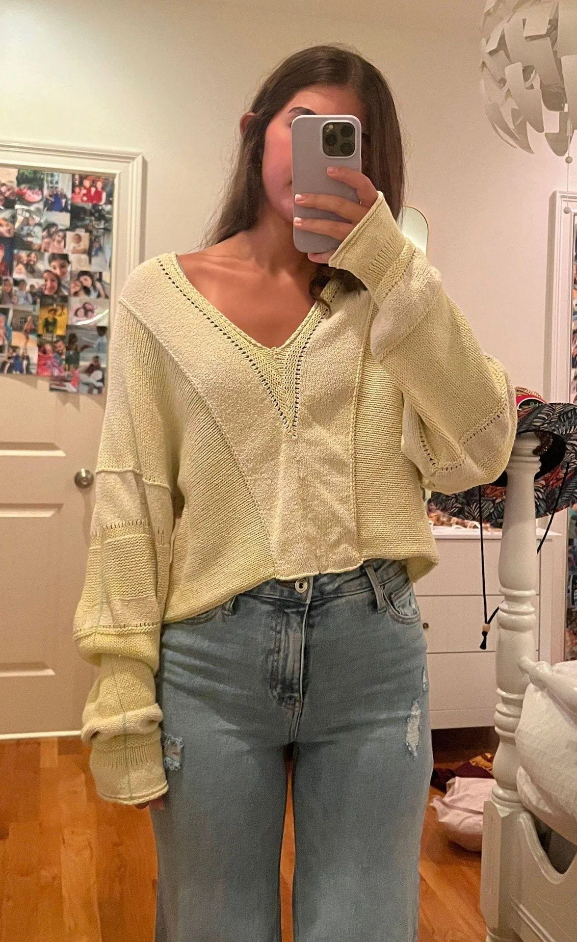 super cute free people sweater. v neck and yellow color.