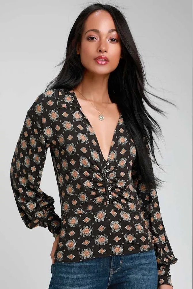 Every day's a party in the Free People Sydney's Party Washed Black Print Long Sleeve Top! Soft and l... Show more