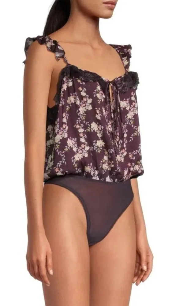 Free People Take It Away Floral Lace Bodysuit Size S Chocolate Merlot Lace Trim Size Small New wit... Show more