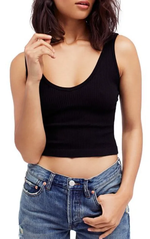 Free People sleeveless scoopneck ribbed crop tank in black. size medium/large. only worn once!