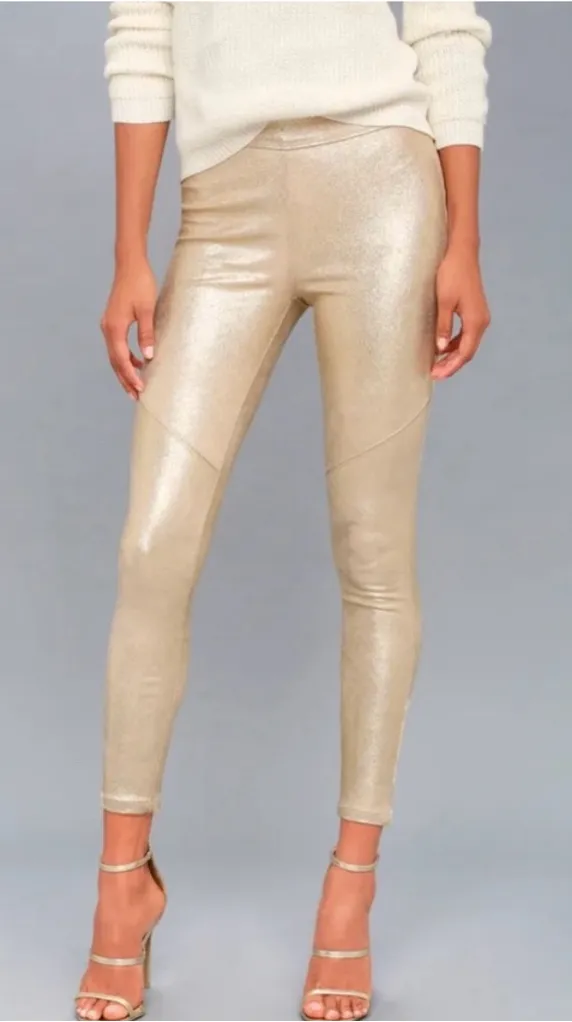Free People | Taupe Metallic Faux Suede Leggings Stretchy Festive Size 29 Free People “Taupe Meta... Show more