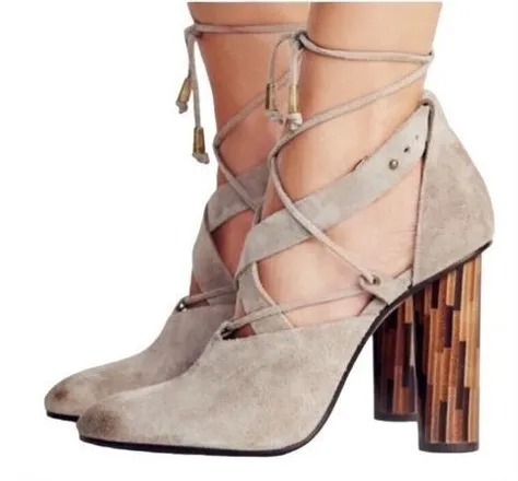 Free People Taupe Nouvella Criss Cross Wrap Chunky Heel Suede Leather Sz 38/6.5. Women ladies junior... Show more