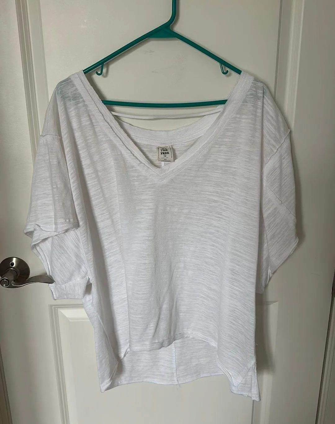 White Free People V-neck T-shirt, size small and is in great condition!!! ππ©·π©΅