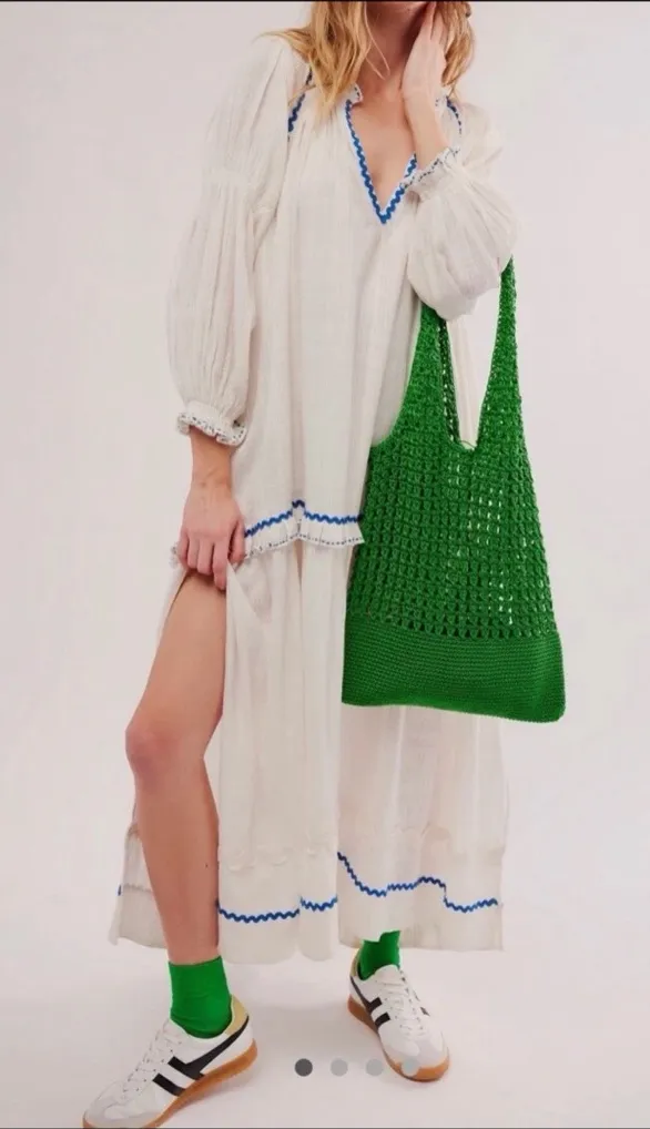 Free People Thank Me Later Maxi Midi Dress Embroider White Combo Blue New With Tags * Size: L Reta... Show more