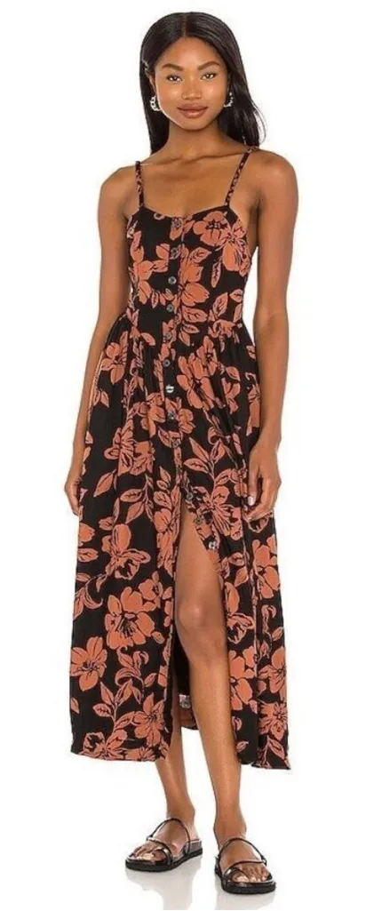 Free People The Perfect Sundress Black Brown Floral Button Down Midi Dress Size Small Color Black... Show more