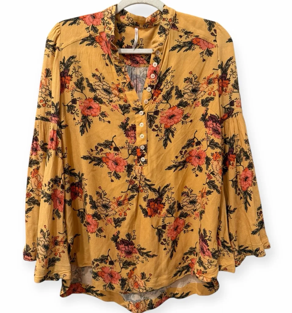 Effortlessly feminine Free People tunic featuring a rich mustard yellow base with an allover floral... Show more