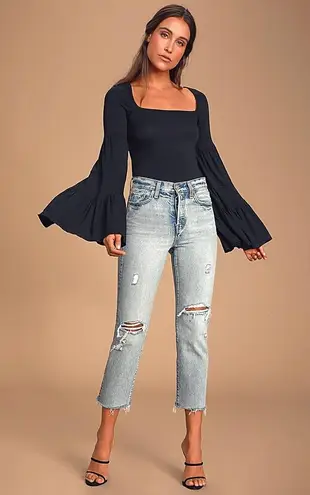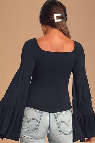 Free People top with dramatic bell sleeves that add vintage vibes to a square-neck top. It is a ligh... Show more