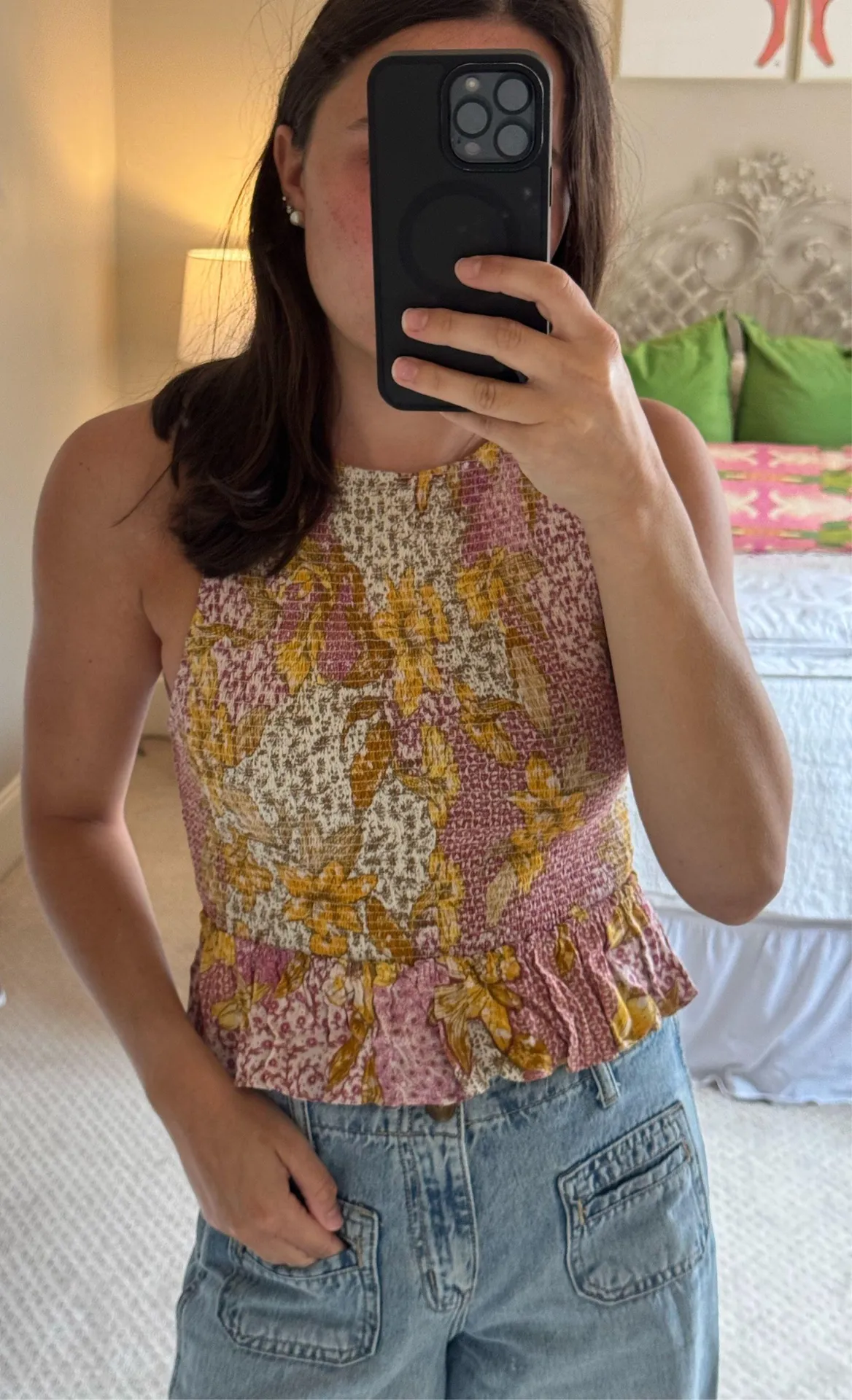 Free People tank top. Such a fun vacation or summer top. In great condition. Perfect with white jean... Show more