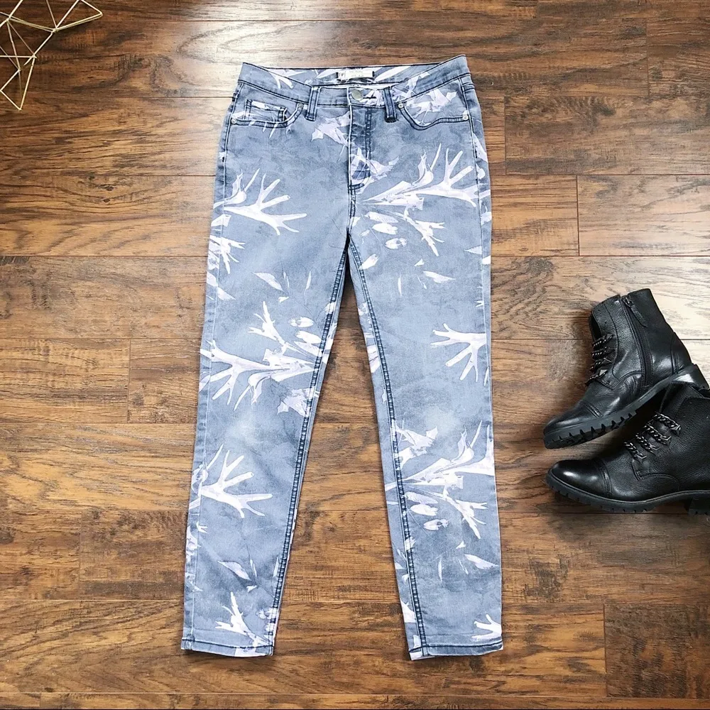 Fabulous high rise skinny jeans by Free People. Cropped high waisted style in grey denim with lavend... Show more