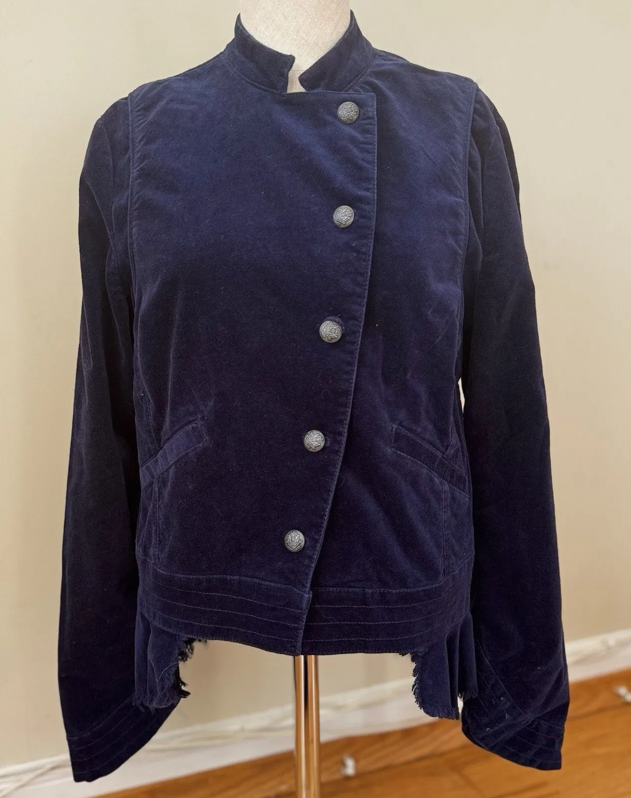 Free People Velvet Military Blazer Jacket Raw Fringe Hem. Color Navy Blue. Size Small. GUC - some wh... Show more