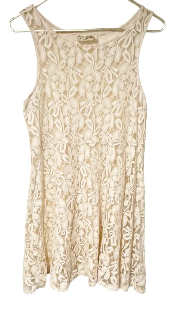 Free People Vintage Size Large Cream Lace Mini Dress Without Slip Size Large Missing Slip Excellen... Show more