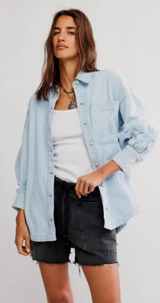 Perfectly oversized for a laidback look, this button-front shirt from We The Free is featured in a c... Show more