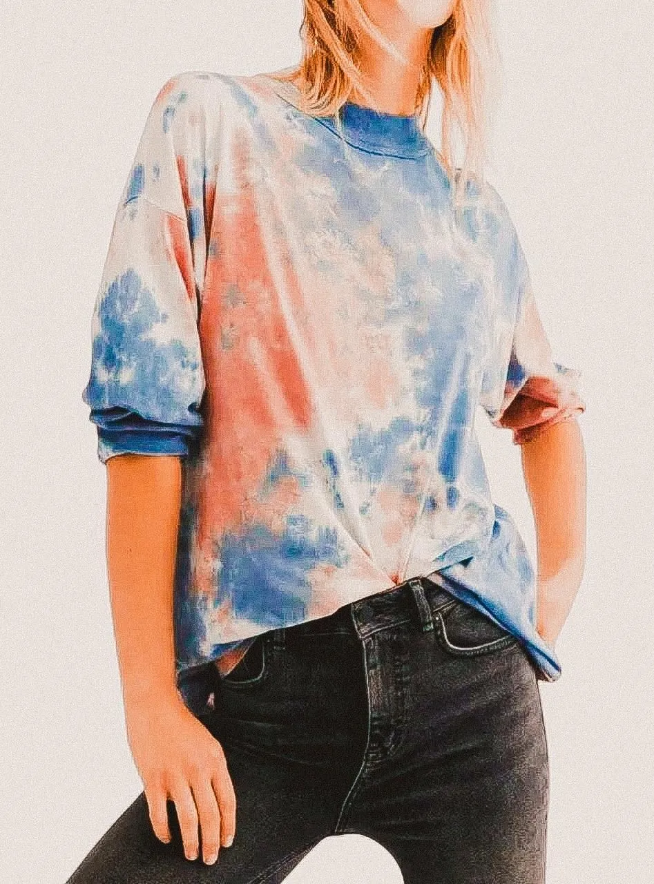 Free People We The Free “Be Free” Cotton Candy Tie Dye Tee – Oversized Indie Grunge L Laid-back and... Show more