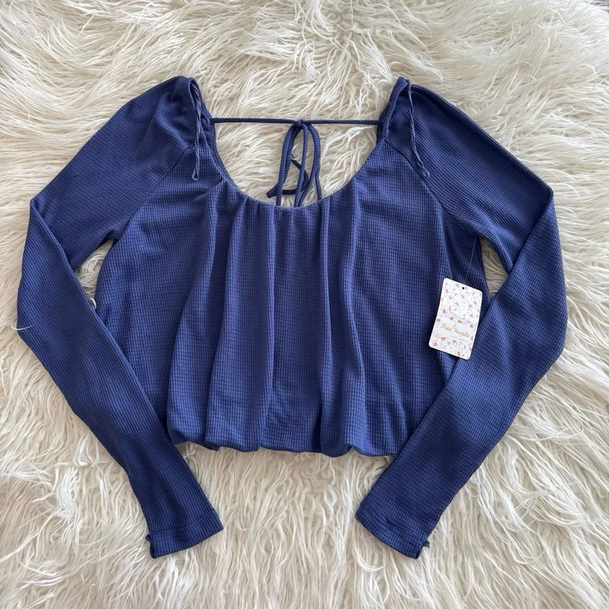 Free People Bondi Thermal Long Sleeve Top True Blue Size XS Heathered scoop neck lined thermal Ela... Show more