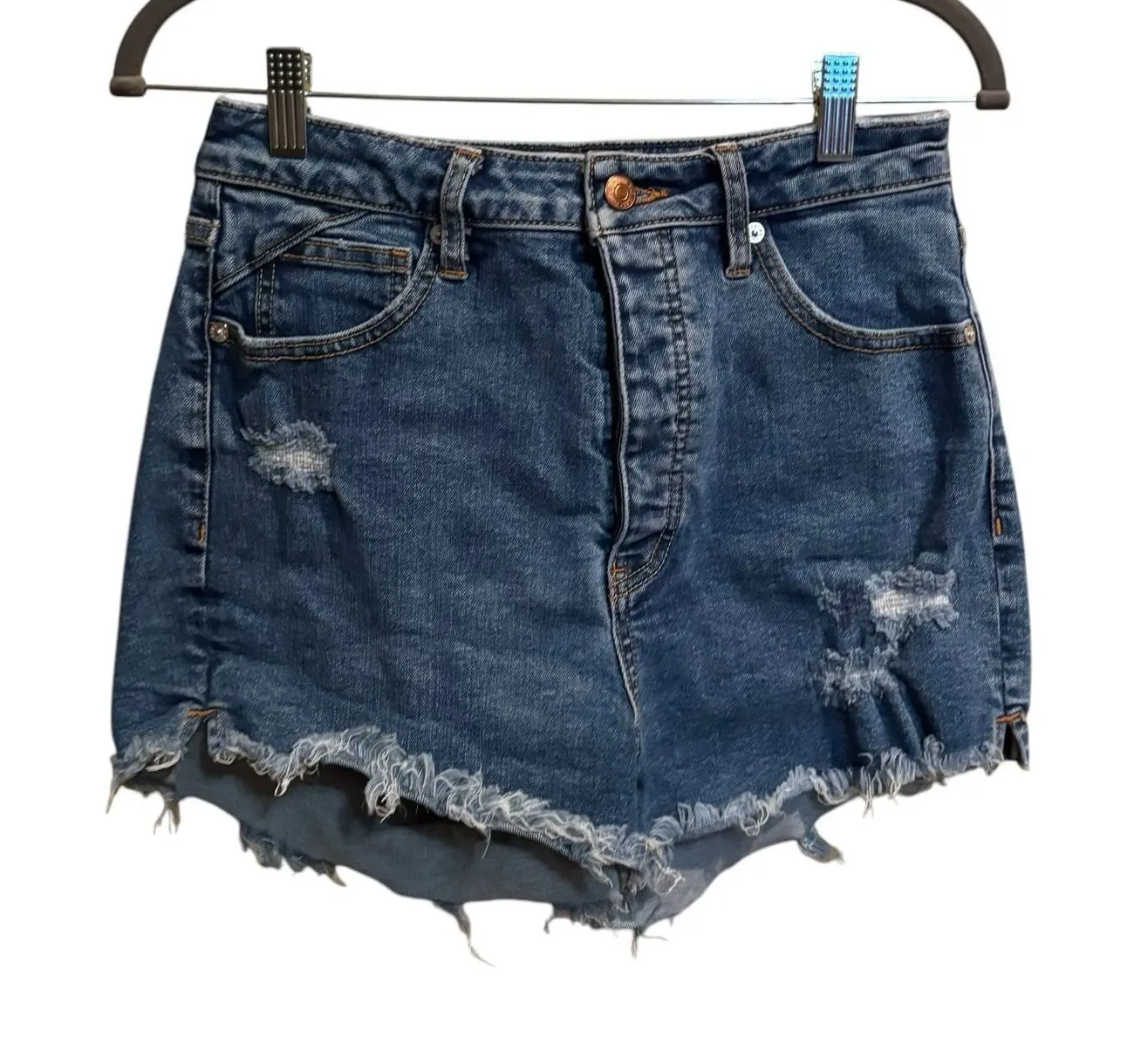 FREE PEOPLE We The Free Crvy Vintage High Rise Shorts Size 28 button fly Waist laying flat 14 inche... Show more