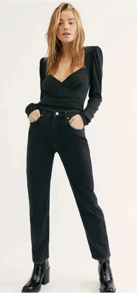 Free People We The Free Dakota Straight Leg Jeans in Black. Free People's sleek Dakota jeans are sof... Show more