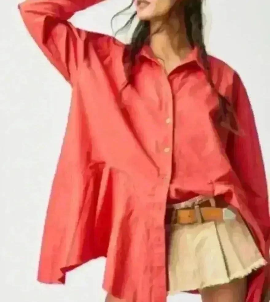 Free People We The Free Freya poplin tunic size L in coral bright relaxed fit. Bust 27” Length 32’... Show more