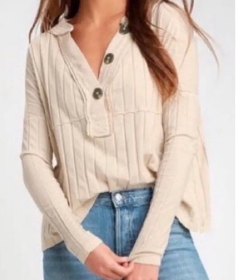 Free People We The Free In The Mix slouchy henley top Stretch cotton blend Wide ribbed Fitted sleeve... Show more