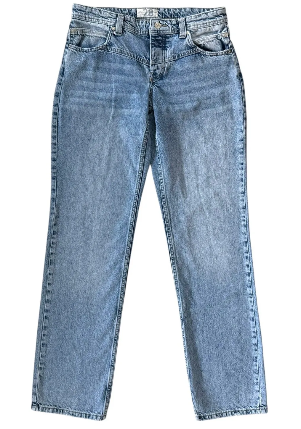 Free People We The Free Straight Leg Jeans Light Wash Denim Pants Size 28 Button Fly Button Closu... Show more