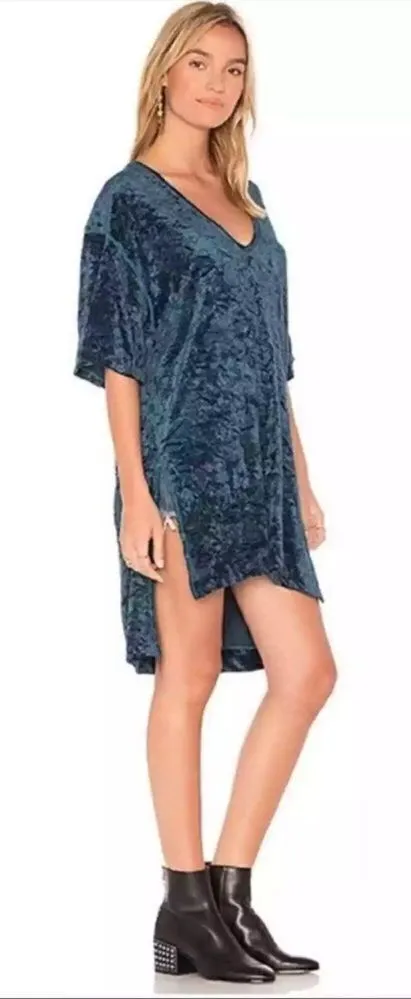 Free People We The Free Luxe Tee Blue Crushed Velvet Tunic Dress Size S. This dress could be wear b... Show more